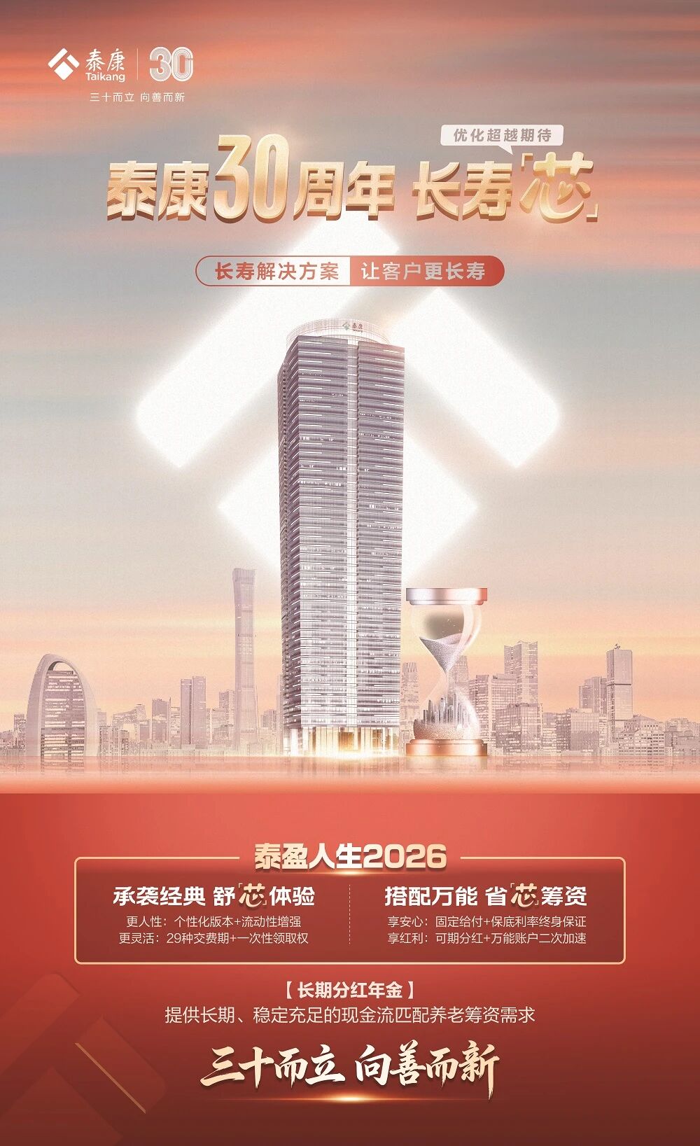 三十而立,向善而新。泰康人壽推出泰康泰盈人生2026(A款)年金保險(分紅型)(簡稱泰盈人生2026),通過“政策稅優(yōu)+保險確定性+長期養(yǎng)老儲備”的疊加,為客戶打造更適配長壽時代養(yǎng)老需求的籌資方案。